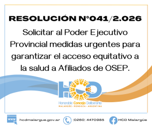 Malargüe exige medidas urgentes para garantizar el acceso a la salud de afiliados de OSEP El Honorable Concejo Deliberante de Malargüe aprobó la Resolución N°