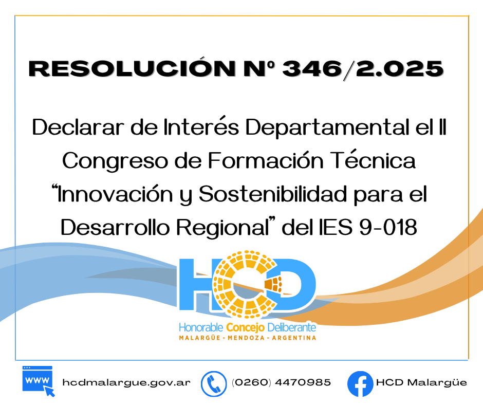 El Honorable Concejo Deliberante de Malargüe declaró de Interés Departamental el II Congreso de Formación Técnica “Innovación y Sostenibilidad para el Desarrollo Regional”, organizado por el Instituto de Educación Superior N° 9-018 “Gobernador Celso Alejandro Jaque”. El evento se desarrolló los días 2 y 3 de octubre en el Centro de Convenciones y Exposiciones Thesaurus.